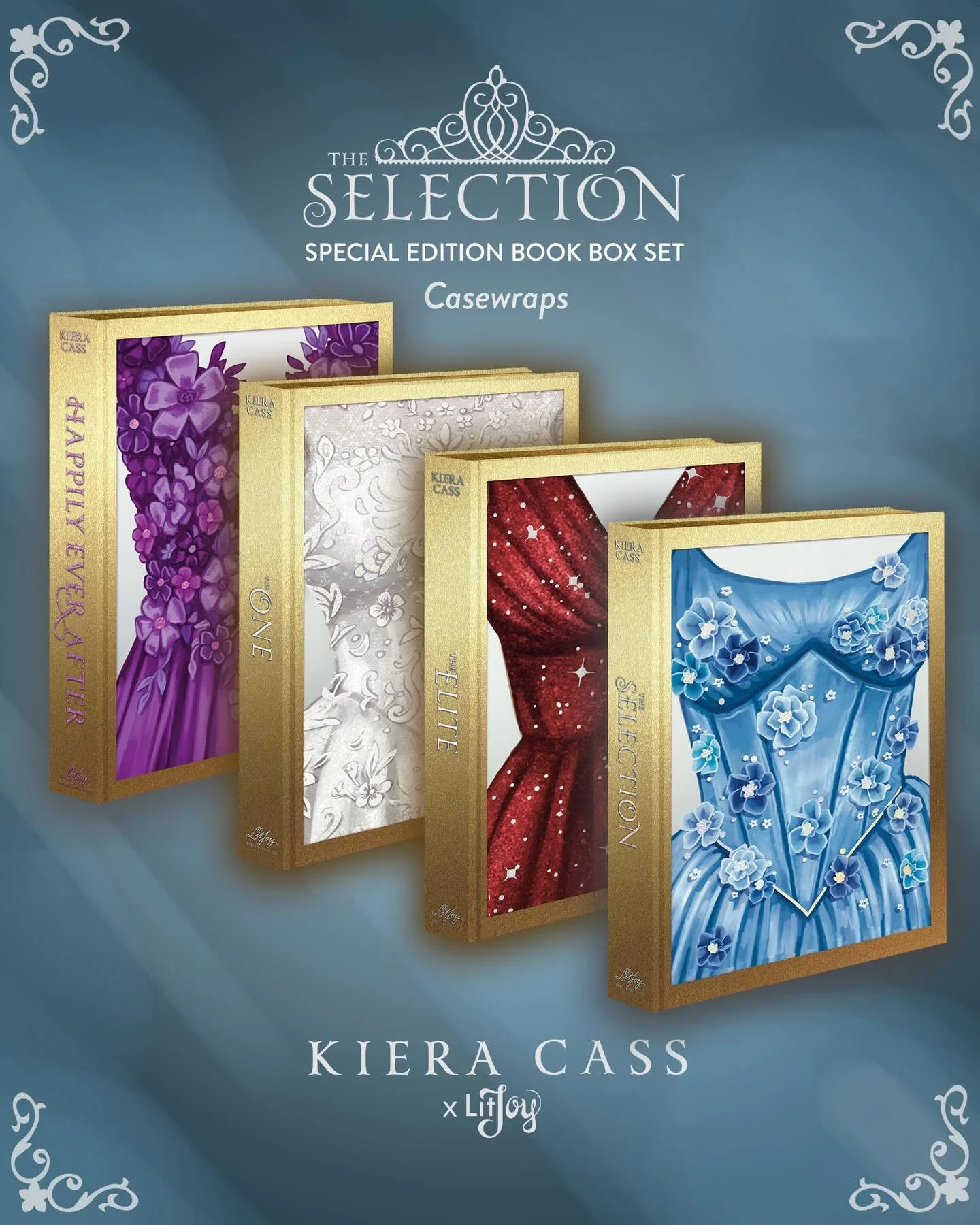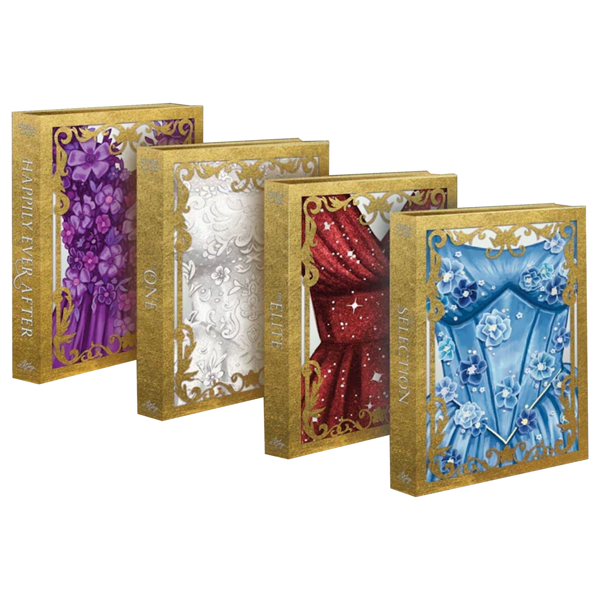 This special edition cover set was created for LitJoy Crate for the bestselling Selection Series by Kiera Cass, which follows America Singer as she competes in a royal selection for the heart of Prince Maxon.