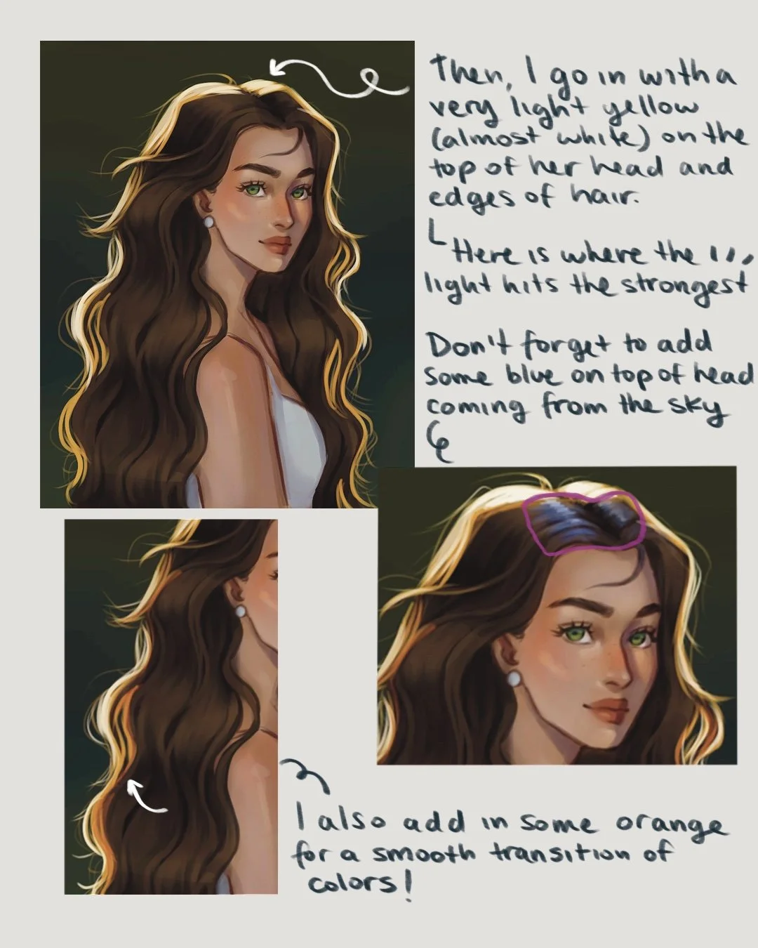 Tip: Add a touch of blue near the top of the head to show reflected sky light β it creates a nice color contrast.