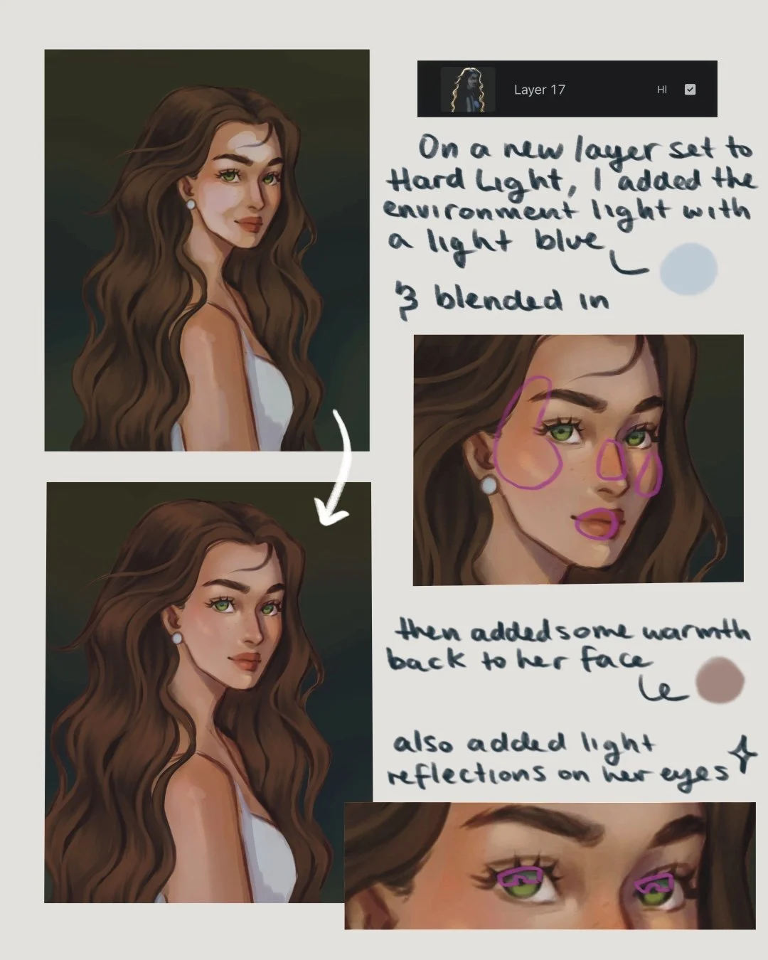 Add warmth back to her face in areas like β cheeks, nose, and lips β for a more natural look.